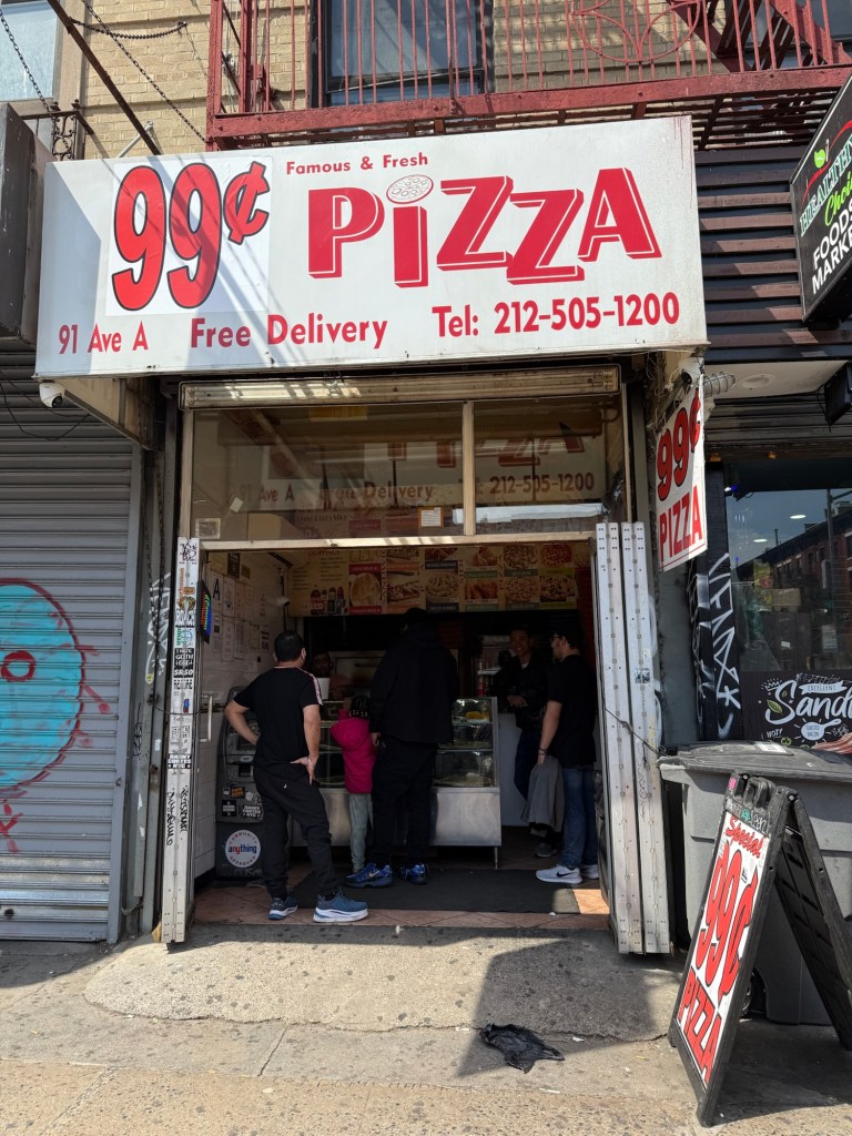 とはいえ、普段、歩き慣れてない旦那には少々キツかった模様。空腹の様子でもあったので道中に目をつけていた99セントピザにとりあえず入店。
